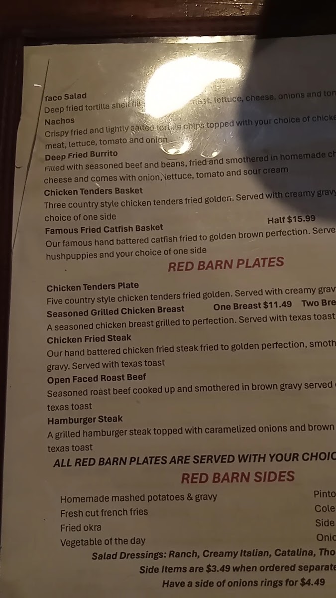 The Red Barn Cafe specializes in classic American cuisine, with a menu that makes your taste buds sing. Standout dishes include their renowned chicken fried steak, which is tender and flavorful, served with homemade mashed potatoes bathed in rich, savory gravy. For those craving something crisp and light, the addictive catfish is a must-try, perfectly fried to golden perfection. Each meal is a testament to hearty, home-cooked goodness, reminiscent of meals at grandma’s kitchen table. The selected green beans add a fresh crunch, balancing the richness of the main dishes.